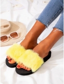 Color : Black Style : Fashionable Pattern Type : Plain Type : Slides Heel Height : Flat Size Fit : One Size Smaller Lining Material : Polyester Outsole Material : EVA Upper Material : Faux Fur Insole Material : EVA
