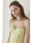 Irresistible Out From Under corset made from a body-hugging stretch fabric with a fitted bodice and underwire cups. Decorated with lace detailing for a romantic finish and topped with adjustable spaghetti straps and hook-and-eye back closures.