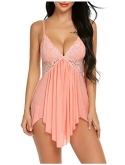 Lace babydoll lingerie is made of 95% Polyester, 5% Acrylic. Skin friendly,Super soft and comfortable to wear, can also be used as a daily sexy sleepwear.