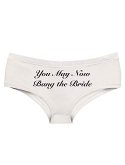 BRIDAL SHOWER PANTY GAME & LINGERIE PARTY - Get ready to have fun when she pulls out this low rise boyshort with a witty innuendo. The cheeky cut on the backside of these booty shorts lands perfectly to show off her feminine curves. Fitting much like bikini bottoms, these flatter the butt without fitting too tight, which is sure to entice her audience to follow the panties not-so-subtle instructions!