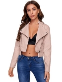 Vintage style faux leather jacket has a round neck, or drooping down slightly as notch collar in simple design, fashion and cool.