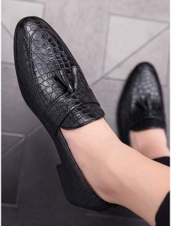 Color : Black Pattern Type : Crocodile Details : Tassel Quantity : 1 pair Size Fit : True To Size Toe : Round Toe Insole Material : PU Leather Upper Material : PU Leather Outsole Material : Rubber