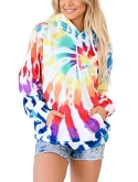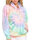 HVEPUO Tie Dye Print Hoodie Long Sleeve Drawstring Pullover Tops Loose Casual Sweatshirt For Women(S-XXL)