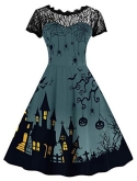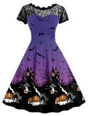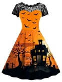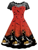 HALLOWEEN DRESS - This Simple Pumpkin and Bat Pattern Print Design is Such a Beautifully Classic Halloween Choice, While the Soft and Lightweight Material of This is So Wonderfully Comfy! This Dress Also Features Lace Accents, Femme Fit and Flare Shape for a Charming Look.