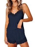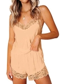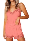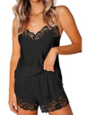 Solid color silk pajamas for woemn cami tops featuring lace splcing,deep v neck,low back,makes the pajamas more flattering.
