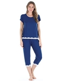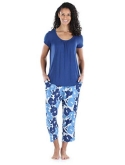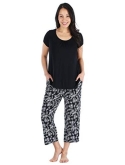 Solid color or all-over print bottoms with elastic waistband