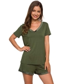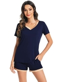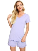 [MOISTURE-WICKING] Enough cool to beat sweats, save you from hot flashes and heat waves. This bamboo fiber material pajama set let your skin breathe all night and helps you sleep more soundly.