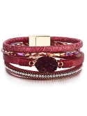 Unique Design: The wine leather bracelet is decorated with super shinny cubic zirconia, wine crystals and druzy quartz . Get the eye-catching CZ bangle for your daily outfit.