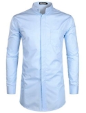 Simple Hipster Style: Longer than Usual Shirt's Body /Solid Color/Long Sleeve/Band Collar /Left Chest Pocket/ Round Hemline