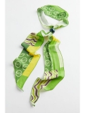 Give voluminous movement to your look with this silky-soft hair scarf patterned in a patchwork design. With a sliding beaded centerpiece for a secure fit.