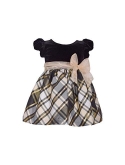 Bonnie Jean Baby Girl's Christmas Dress, Black and Gold Plaid.