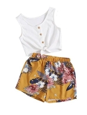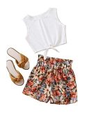 Tops: Tie knot front, round neck, sleeveless tank top for girls