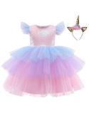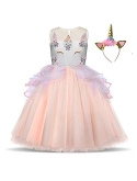Zipper closure on the back. With cute unicorn appliques, decorated with shining beads,making it a lovely unicorn princess dress for realizing little girl's princess dream. Suit for baptism, dress up costume, baby photography,daily wear,,pageant, festival, recital evening and wedding party, and other formal, family gathering or special occasions.