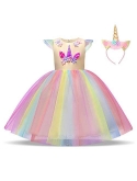 The parcel comes with 1*dress +1*unicorn headband. Size for (3-9) Years Baby Girls. Please refer to our size information on the left picture of Detail Size Chart before ordering. Size Table means age ranges for the baby, but they are for general guidance only.
