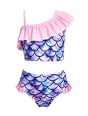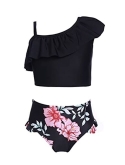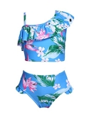 Design: Ruffled flounce bikini top design, slanted shoulder design, uinque.cute and beautiful. Girls hawaiian swimsuits with 3D printed pattern, vibrant and pretty