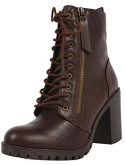 Product Detail : These boots features a military inspired combat boots silhouette with chunky rubber block heel, threaded lug sole, side zipper closure, full frontal lace up closure, decorative and non functional zipper with a tassel on the zipper.