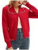 Design:Vintage Cardigan sweaters, V neck vintage tops, Contrast Collar Knit Tops, suitable for trendy women of different ages.