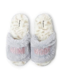 Cozy faux faux fur upper with fun Mothers Day slogans.