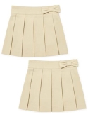 This classic front-pleated skort has a pull-on waist and hidden size zipper