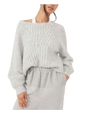 Knit pullover sweater with relaxed, long sleeves and a round neckline.