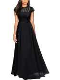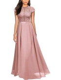 Lace Contrast Chiffon Style, Zipper On The Back, Maxi Dress.