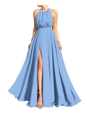 Sexy Women's Halter Chiffon Bridesmaid Dresses Long A Line Backless Formal Evening Wedding Guest Dresses