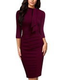 Vintage Half Collar Style, 2/3 Sleeve, Tie Design On The Neck