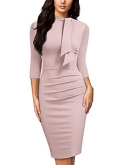 Slim Cutting, Ruffle Design On The Waist Part of Dress, Knee Length.