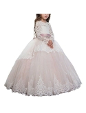 Soft lace tulle cotton,soft and comfortable.Girls ball gown.Pink flower girls dresses.