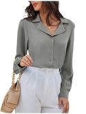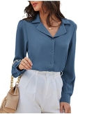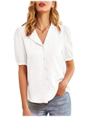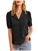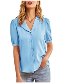 FeaturesBlouses & button-down shirts, button down, v neck, short puff sleeve, turn down collar, pleated back, loose fit design, lapel neck, lightweight, comfortable fabric.