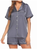 Pajama Top:Short sleeve sleepwear with notch collar,button front pajamas shirt and one chest pocket design.Lightweight and Skin-friendly silk pajamas for women.Great for sleeping,casual wear or lounging around the house or yard all day