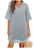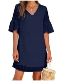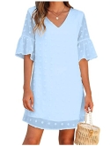 Feature: this cute dresses for women shapes with vneck, 3/4 ruffle sleeve, sheer sleeve, knitted accent pom poms, a shift silhouette that falls into a straight hemline,flowy summer dress.
