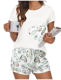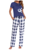 2 Piece Sleepwear Set: Plaid Heart -Shaped Round-neck short sleeve tee Shirt top with Drawstring & elastic waist Plaid Shorts