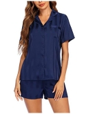 Pajama Top: Short sleeve button down pajamas shirt and one chest pocket design with notch collar, which is classical and elegant