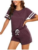 Designs: Classic Solid Color and Stripe Design, Short Sleeve/ Crew Neck/ Pullover Tops, Drawstring Waist Shorts with Pockets, Combine Casual Style with Basic Vogue, Perfect for Women, Ladies, Girls and Teens