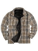 2024 New Mens Fleece Lined Plaid Jackets Full Zip Fall Winter Coat