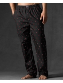 This soft cotton pant is a simple luxury that you should not be without. Relaxed fit with elastic waistband and single button fly. Polo player print all over. Logo applique at front waistband.