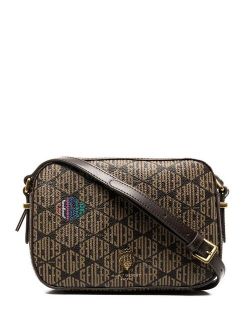 Brown/beige Richmond monogram-print crossbody bag from Kurt Geiger London featuring gold-tone hardware, top zip fastening, adjustable shoulder strap, main compartment and multiple internal slip pockets.