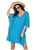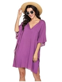 CASUAL STYLEWomens swimsuit beach cover up features deep V-neck collar and bats sleeve loose style,classic and fashion design makes you sexy and hot