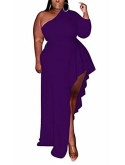 Ladies one shoulder Long sleeve solid ruffle high low irregular blouse tops shirt evening party long maxi dress plus size
