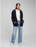 Shop Gap's Teen Oversized Tunic Hoodie: This hoodie is made with 23% recycled polyester. Less waste in the world. More great sweatshirts for you., Soft knit sweatshirt., Long sleeves with banded cuffs., Hood., Full-zip front., Kanga pockets at front., Banded hem., Certain styles have graphic at chest and sleeve., We reuse materials whenever we can to help minimize our impact on the planet— because we believe less means more. Look inside each garment to learn about its recycled content., This sweatshirt was made in a factory that runs the Gap Inc. P.A.C.E. (Personal Advancement & Career Enhancement) program. P.A.C.E. is our educational program that helps the women who make our clothes build the skills, knowledge, confidence & resilience needed to advance in work & life. Learn more at gap.com/pace