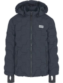 Standard-fit puffer coat is constructed with a helmet-compatible hood, front-zip closure, and long-sleeve coverage.
