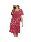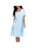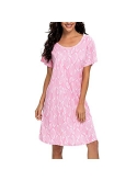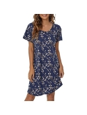 Stylish and Comfortable : This button down pajamas dress features V neck loose curved hem,hits mid-thigh,short sleeves,this stylish design will make you look slender and charming.loose fit and light material let you be comfortable while sleeping and doing work at home.