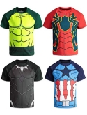 Featuring Marvel Avengers Infinity War 4 pack of short sleeve athletic performance tees: The Incredible Hulk, Black Panther, Iron Man and Captain America