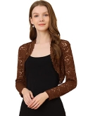 Crop Shrug Top, Floral Lace Sheer, Long Sleeve, Scalloped Design, and Open-Front.
