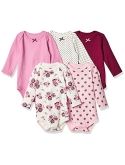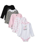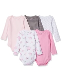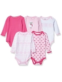 Baby Infant Girl Cotton Long-Sleeve Bodysuits 5pk, Pink Penguin, 0-3 Months