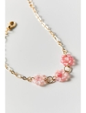 Simple chain bracelet strung with sweet flower beading. Complete with an adjustable clasp closure. Content + Care 50% Iron, 50% acrylic Avoid contact with water Imported Size Length: 11