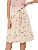 Polka Dot Print, Hearts, Belt, Midi Length, Elastic Smocked Waist, Hidden Side Zipper, Lined.
