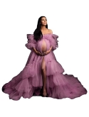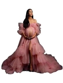 Style: Long Perspective Maternity Dress for Photoshoot/ Bridal Robe/ Old Hollywood Robe/ Sheer Dress/ Bathrobe/ Wedding Robe/ Cover up/ Kimono/ Lingerie for Women. Material: High Quality Tulle .The Picture colour is Mauve,if you need any other colours, please contact us, we can customize for you. Breathable & Lightweight fabric gives you pleasing experience.