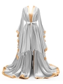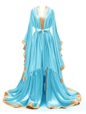 Materail:Silky Smooth Satin on the Outside,Matte Satin on the inside,Pure and Gold Trimmed,with a Satin Belt.